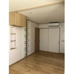 既存の玄関ホールと洋室をリビングにしました。和室の襖を壁にし、和室を独立させ、戸襖を新規収納の建具として再利用しました。
