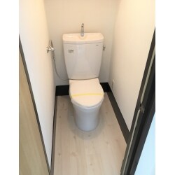 築年の経過で、古くなってしまったトイレを交換してほしい。 床や壁紙も古くなり汚れが目立つので張り替えをしてほしいとのご要望をいただきました。
