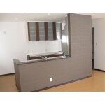 景色を遮っていた間仕切壁を撤去して、開放的で明るいキッチンを提案いたしました。