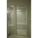 集合住宅でしたので、漏水のリスクの少ないユニットバスをお勧めしようかと考えたのですが・・・。 既存の真っ白いタイルの印象が損なわれるのは、あまりに惜しいと悩みに悩みました。 そこで、白のハーフバス+タイル+透明ガラスという構成をご提案させていただきました。