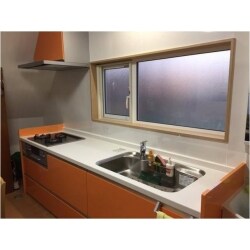 キッチン・洗面化粧台を新しくしたいとのことで普段使いにくいと感じている天袋も撤去し明るく開放的なキッチンに生まれ変わりました。キッチンのカラーも、元気いっぱいな素敵な奥様にお似合いのオレンジを選択されました。とっても喜んで下さりました。