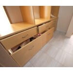 リビングの一角に畳スペース・仏間があるが、エレクトーンや衣装ラックが置いてあり、デッドスペースになっていました。物入も家族4人には小さすぎます。 玄関に下駄箱が二つあるので靴は収まるのですが、それ以外のものが行き場がなくホールに置かれている状態。
