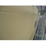 施工後の全景になります。 左:ALC外壁と右:ラムダ外壁とでは色変えをしています。使用した塗料はどちらもフッソ塗料になります。 また、左下の柱もストーン塗料での施工をしてあります。