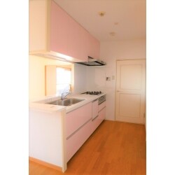 食洗機をつけてピンクのかわいいキッチンになりました。