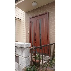 タイルなどを解体して、玄関ドア枠ごと取り替える方法もありますが、玄関ドア枠は残したカバー工法により安価で1日でリニューアル出来る玄関ドアの交換を提案させて頂きました。