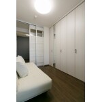 和室からつながる、押入、納戸を一体にし、2つの空間の仕切りは採光を考慮して可動の引込戸にし、一つの空間でも使いやすく、また自由に仕切る事も出来る様にしました。 水まわりの動線を変え、洗面へのアクセスをあえて1方向にシンプルにし、使い勝手や収納を充実させました。