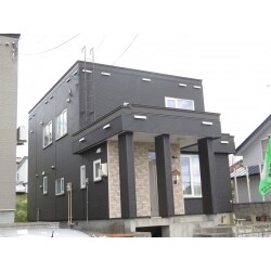 玄関に温かみのあるレンガ調のサイディングで貼り分けをしてアクセントをつけました。