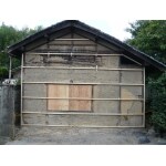 現在、物置として使っている建物の外壁と波板屋根、雨囲いが傷んでいる。交通量の多い道路沿いなので強風時の事故が心配。