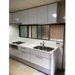 湯沸かし器がついている昔ながらのキッチンを外部に給湯器を新設して、最新式の収納たっぷりのシステムキッチンにリフォームしました。