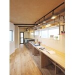 (旧株式会社ハウスドゥでの事例です。)造作カウンターはプランをお見せした時から気に入ってくださいました! 息子様がアレルギーをお持ちだったため、天井や床材が自然素材となるように、内装にはこだわって打合わせをしました。 本がお好きなお客様のために、天井裏や洋室壁面のニッチの本棚など、少しのスペースも無駄にしないように収納スペースをご提案しました。