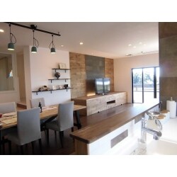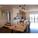 床材は朝日ウッドテックの床材を使用しました。 質感がとてもよく、ご家族のくつろぎのお時間が作れるかと思います。 テレビボードと背面壁のアクセントは無垢材で造作し、世界にひとつだけの特別な商品・空間をご提案させていただきました。 もともと廊下・洋間だったところをリビングダイニングにリフォームし、リビングの小上がりの先には子供部屋がありコミュニケーションもばっちりとれます。