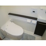 節水で省エネなタンクレストイレ。デザインも美しいトイレです。