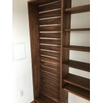 今回は無垢材のブラックウォルナット材で家具工事させて頂きました。天然木材ならではの風合がいい印象で、フルオーダーの為、壁の幅や高さに合わせる事が出来、ピッタリサイズのしっかりとした家具が出来ました。