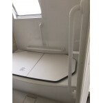できるだけ自力での入浴ができるように手すりを配置しました。 既存は1318サイズでした。鉄骨造りのため、マンションリモデル用の1418サイズに拡張しました。 浴室暖房器、ほっカラリ床で冬場の入浴も安心してくつろげます。