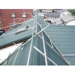 雨漏りがあるとのことでしたので、トップライトと温水器を外して軽量金属屋根重ね葺きをご提案致しました。