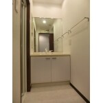 白いクロスに貼替えを行いました。全体的に明るくなり、以前よりも広い印象を与えてくれます。また、鏡も既存と同じ寸法のものに交換しました。 浴室のドア下にあった段差がなくなり、フラットになっています。