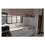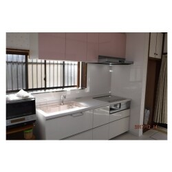 キッチンシンクと吊戸棚はかわいらしいピンクに!シンプルですっきりしたお台所に変身!