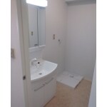 洗面化粧台、洗濯機パン、クッションフロアー、クロスを張り替えました。