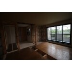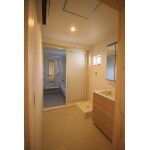 玄関の吹き抜け部分を床に変更することと、隣の部屋を半分もらうことによって、変則的ですが対面式のキッチンが付いたLDKの一部屋を作成することができました。西側を大きく間取り変更して、脱衣場とユニットバスの設置。脱衣場には洗面・洗濯機を設置して、キッチンは対面式になるように設計いたしました。少し変形型ですが、キッチン・ダイニング・リビングがくっついたLDKの部屋を造ることができました。ダイニングとリビングには床暖房が施工してあります。