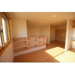 「できるだけ大きなLDKにしてほしい」というご要望ですので、現状「吹き抜けになっている玄関」をふさいで床面積を増やし、「2階寝室の押し入れ」2つを壊し、変則的な形になりましたが「一つの大きなLDK」の空間を作ることができました。 床暖房は「ヒートポンプ式の温水床暖房」を設置しました。エコキュートのヒートポンプを使用しているので、電気・ガス・灯油に比べて、ランニングコストが一番安く、設置費用も安いです。また温水式はとても肌に優しいのが特徴です。電熱式の場合ペットにとっては熱すぎるので、皮膚炎になってしまう子も多く、ペットを飼っていらっしゃる方が床暖房を選択なさるときには、大切な子のために温水式を選んであげてください。 電灯は全てダウンライトに交換しました。天井がスッキリして圧迫感が無くなります。 家具は全て造作をして壁面に取り付けましたので、新たに家具を買う必要も無く、地震の時にも倒れたりはしません。