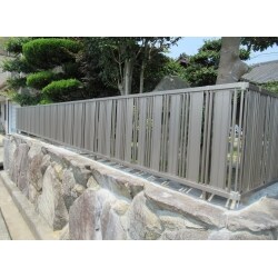 亀裂が入った危険なブロック塀から落ち着いた色のアルミフェンスに変更をしました。しっかりとした金属のフェンスですので、万が一地震がおきても安心です。 使用商品【三協アルミ:形状フェンス ニューアイシャノンH800/アーバングレー】