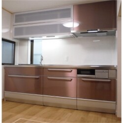 キッチンの向きを変えてお部屋が広く使いやすくなりました。クリナップのオールステンレスのキッチンで臭いや色シミがないので、いつまでも清潔感のあるキッチンです。
