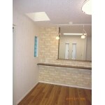 キッチンの位置を変えました。 キッチンからダイニング・和室を見渡せるようになりました。 カウンターのアクセントクロスがかわいく仕上がりました。