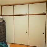 以前からお住まいのリフォームをさせていただいているお客様で、今回は、押入れ・天袋・取合襖の張替でした。一般的に襖も障子や畳と同様、日に焼けて黄ばみがでてきます。襖は紙の張り替えをする事により、何度でも新品同様によみがえります。今回は機能性と環境に配慮した角兵衛シリーズで張替させていただきました。