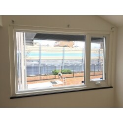 今回は二枚引き違いの窓から、FIX窓と縦辷り出し窓の組み合わせで提案させて頂きました。防音効果を得られるようにガラスは3mmと5mmの暑さのガラスを組み合わせたペアガラスです。また、断熱性が高いオール樹脂窓です。