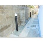 Panasonicのポールライトを設置するために、植木を伐採・し、電線経路部分を土間コンクリート斫り・モルタル補修を行い、バラスを敷き綺麗になりました。