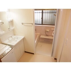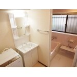 バスはタイル張りの在来浴室から、システムバスへ。 浴槽横のデッドスペースを利用し、洗面室を作るよう、間仕切り壁を移動。その分浴室は狭くなっているのですが、全く感じさせず、有効的スペースとなりました。 元々浴室内にあった洗面台は撤去し、新しく作る洗面室に設置します。