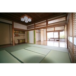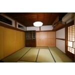 奥の10帖和室はそのままにして、手前10帖を8帖の洋間+階段上部と合わせ3帖のウォークインクローゼットを造りました。真壁の雰囲気は残しつつ違和感無い様に、淡い色のフローリング、天井はシナの目透かし張りにて仕上げました。 襖を閉めると個室、開けると大勢のお客様との団欒の場所になります。