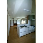 16帖のLDKに生まれ変わりました。同じ空間なのにとても広く明るく感じられます。I型のキッチンで振り返ると、家電収納、そして食器棚からはすぐ皿を取り出すことが出来ます。毎日キッチンで調理をしていても、ダイニングテーブルに腰掛けている家族みんなの顔を見ることが出来ます。