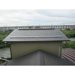 (旧株式会社東亞での事例です。)重量のあるセメント瓦から、軽量のガルバリウム鋼板を施工させていただきました。お客様が心配されていた自然災害の影響も軽減できるかと思います。また板金仕上げにすることで、耐久性・耐候性に優れ、遮熱機能もあります。2Fの天井部分には断熱材がありましたが、さらに棟換気を施工し小屋裏部分の換気が出来るので、より2F居室が快適になったと思います。
