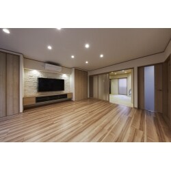 元々は2間続きの和室を1間に縮小し、リビングスペースとして広さを持たせました。 和室とリビングとの境目は段差を作らないこと、可能な限り床面を多く見せることで、視覚的にひと繋がりの空間に見えるため、広さを感じることが出来ます。 室内のフローリングは全てワンちゃんの為の、ペット用フローリングを施工しワンちゃんの足腰に負担がかからないようにしています。 玄関は奥様がお友達と立ち話をよくされるとのことで、スペースを広く確保。 音楽大学に通われている娘様がピアノの練習をする際、音漏れの心配を気にせず演奏が出来るよう、防音設備を整えた個室を。 ご家族が快適に楽しく過ごせて、ご親戚もたくさんご招待できる大空間リビングが自慢のお家が完成しました。