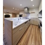 壁付けのコの字型キッチンで使い勝手は気に入られていましたが、閉鎖的な印象をお持ちであったことから、ダイニングと向かい合うコの字型キッチンにレイアウトを変更しました。 今回設置したのは、パナソニックの最高級グレードキッチン【Lクラス】です。 収納スペースの使い方など施主様のライフスタイルに沿ったプランニングが細やかに出来る点、デザインや高級感を大変気に入られた有機ガラス系人造大理石カウンター「グラリオ」を仕様に組み込めることが決め手となりました。 キッチンの背面には幅3000mmのカップボードを設置。 キッチン横には小皿などを仕舞っておけるスペースなど、キッチン用品や小物類が多くなりがちなキッチンもスッキリと保つことができるように、収納スペースを充実させてプランニングしました。