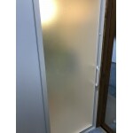 勝手口のドアを外して壁を作り、お風呂によく使われるガラスルーバー窓を新たに設置しました。