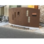 住宅の外壁がサイディングの為、硬い感じがするので、他所で見かけないR形状の塀にして、左官仕上げにして柔らかさを演出しました。
