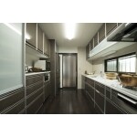 リビング横のダイニングをキッチンに改修。 孤立していたキッチンがリビングに繋げたことで、生活動線を大幅に改良。 I型キッチンと背面収納とで、収納力も充実。