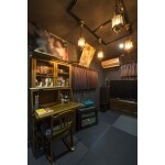 キッチンを改修してご主人の書斎を造作しました。 映画の世界観をモチーフとしたイメージで、隠れ家的な雰囲気の書斎にしました。