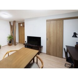 廊下をリビングの一部に取り込み、サニタリーエリアを広いワンフロアに間取変更。 ドア数、段差に留意し、全体をワンルーム化することで、将来を見据えた間取に。 ウッディ調の内装にすることで、ぬくもりを演出。