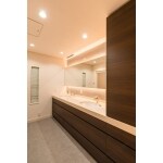 まずはご夫婦共通の要望にあった、収納力の改善。 お客様が洗面室に収納したい物とその場所、サイズを明確にしてからプランニングしました。 徹底的にお客様の『使い勝手』にこだわりました。 洗面化粧台はプランの自由度が高い、造作洗面台をご提案。 また、現状の鏡への水はねも気になられているとのことでしたので、鏡の高さを変更。 化粧台前面の壁をタイル貼りとし、水はね跡や水けが気にならないように配慮しました。 年に数回足を運ぶ、お気に入りのホテルがあるとのことでしたので、さまざまなイメージ画像を一緒に見ながら、イメージを共有。 シンプルでありながら、洗練された空間へとなりました。