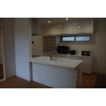 別室だったキッチンとリビングダイニングの間の壁を撤去し、開放的で明るいLDKとなりました。 元のキッチン壁面には、収納キャビネットを設置しました。