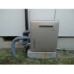 浴槽隣接設置型給湯器です。現在も同型の後継機種は販売されていますが、高さが低く、奥行きが大きくなっているため、各配管の調整が必要です。