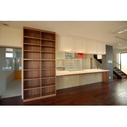 「キッチンにいながら、お子様達とお話や勉強ができるようにしたい」「とにかく大きくて使いやすいようにしてほしい」、というご要望を受け、キッチンとキャビネットをコの字(U字)型に配列したキッチンです。