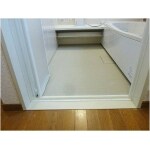 脱衣所がフローリングでしたが床を痛めることなく特殊な薄い塩ビ部材を駆使してバリアフリー工事になりました。