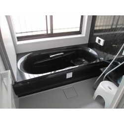 商品はお客様のご希望でシックなデザインのユニットバスにさせていただきました。 ユニットバスは壁の色や床の色など、さまざまな組み合わせがあり お客様だけの特別な空間を選ぶことができます。 窓には寒さ対策で内窓を設置させていただきました。これで冬も快適なバスタイムになりますね!
