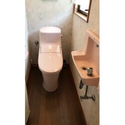 壁付の手洗器がもともとついていたので、手洗い器なしのタイプをご提案させて頂きました。色については、最初は白が良いのではないかとの事でしたが、手洗い器の色に合わせてピンクのご提案をさせて頂きました。色合いも、そろってお客様に喜んで頂けました。