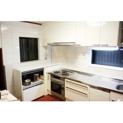 スライドタイプの収納と、加熱機器の隣には家電収納を設置