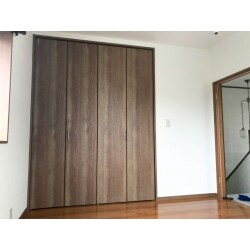 息子様ご夫婦が暮らされる空間を作るために、和室を洋室に改修しました。 既存の押入れはウォークインクローゼットにすることで、収納空間を増やしました。 また、お子様が生まれるとの事だったので、床は傷がつきにくくワックスがけ不要のフロア材を選びました。 2部屋あった和室を1部屋の洋室にして、寝室と居間を区切れるように大きな3枚引戸を入れました。